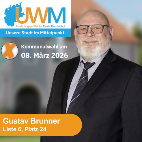 wir hoffen, dass es Ihnen gut geht und Sie gesund sind. Gemeinsam stehen wir wieder vor wichtigen politischen Herausforderungen – und ebenso wichtigen Entscheidungen für unsere Wählergemeinschaft, um unsere bisherige, erfolgreiche Politik für unsere Stadt Maxhütte-Haidhof mit seinen Bürgerinnen und Bürgern weiterzuführen. Im Hinblick auf die bevorstehende Kommunalwahl im kommenden Jahr 2026 möchten wir Sie/Euch herzlich zur Nominierungsversammlung zur Aufstellung der Stadtratskandidatenliste einladen.